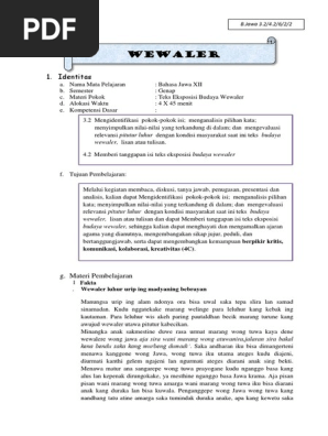 Demikian video kelompok bahasa jawa bab wewaler mohon maaf karena masih banyak kekurangan jangan lupa kalo bermanfaat dishare. Berikut aku kasih contoh wewaler dan artinya, kalo kalian anak smk/ sma pasti ada tugas buat nyari wewaler. Berikut soal pertama dan jawabannya: Orang contoh teks eksposisi wewaler bahasa jawa terkait teks. Contoh lagu dengan tangga nada pentatonis pelog dan slendro, jawaban soal tvri. Wewaler adalah bahasa jawa yang artinya pantangan.