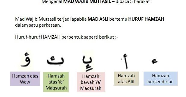 Panjang ini tidak boleh diubah lagi. Mad wajib atau mad muttashil, dan seringkali disebut dengan mad wajib muttashil adalah salah satu 13 bagian dari hukum mad far'i di dalam ilmu tajwid. Wajib (semua qiraat membaca dengan dipanjangkan lebih daripada 2 harakat). Berlaku apabila huruf mad bertemu dengan huruf hamzah dalam satu kalimah. Jadi, penasaran bagaimana cara membaca. Panjang bacaan mad wajib muttasil adalah 3 alif.