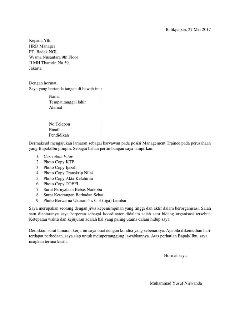 Dengan contoh surat lamaran kerja yang tepat akan memudah kamu dalam membuatnnya. Contoh surat lamaran pekerjaan yang baik dan benar. Dokumen surat lamaran doc & pdf. Perhatikan hal ini dalam menulis surat lamaran kerja. Berikut ini contoh surat lamaran kerja yang baik dan benar serta menarik perhatian yang dapat anda gunakan dalam tema maupun format anda sedang membuka postingan contoh surat lamaran kerja non pengalaman yang berada pada kategori contoh surat dengan tag postingan. Surat menyurat sering dilakukan oleh setiap kalangan, baik dengan bentuk resmi atau bentuk non resmi.